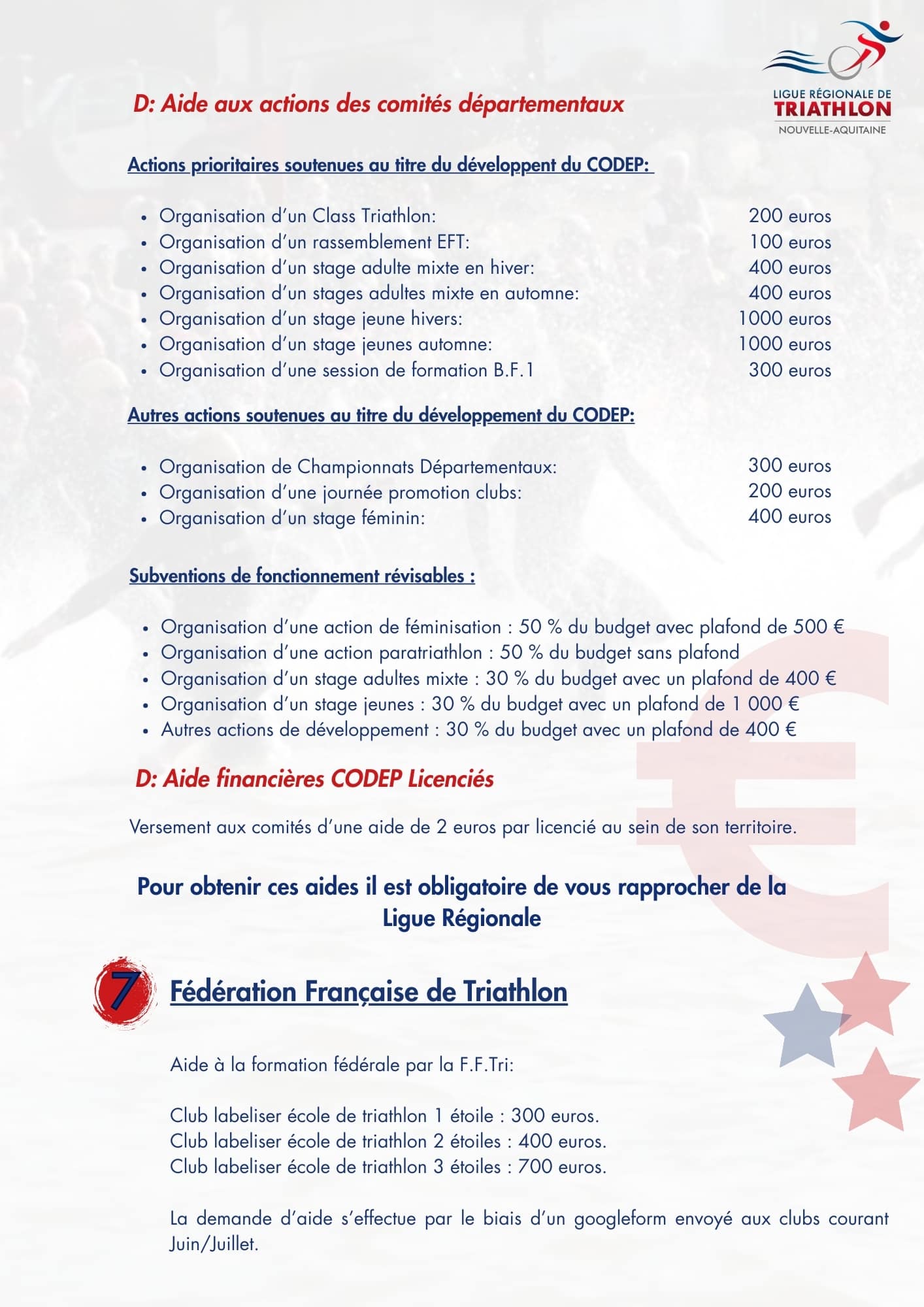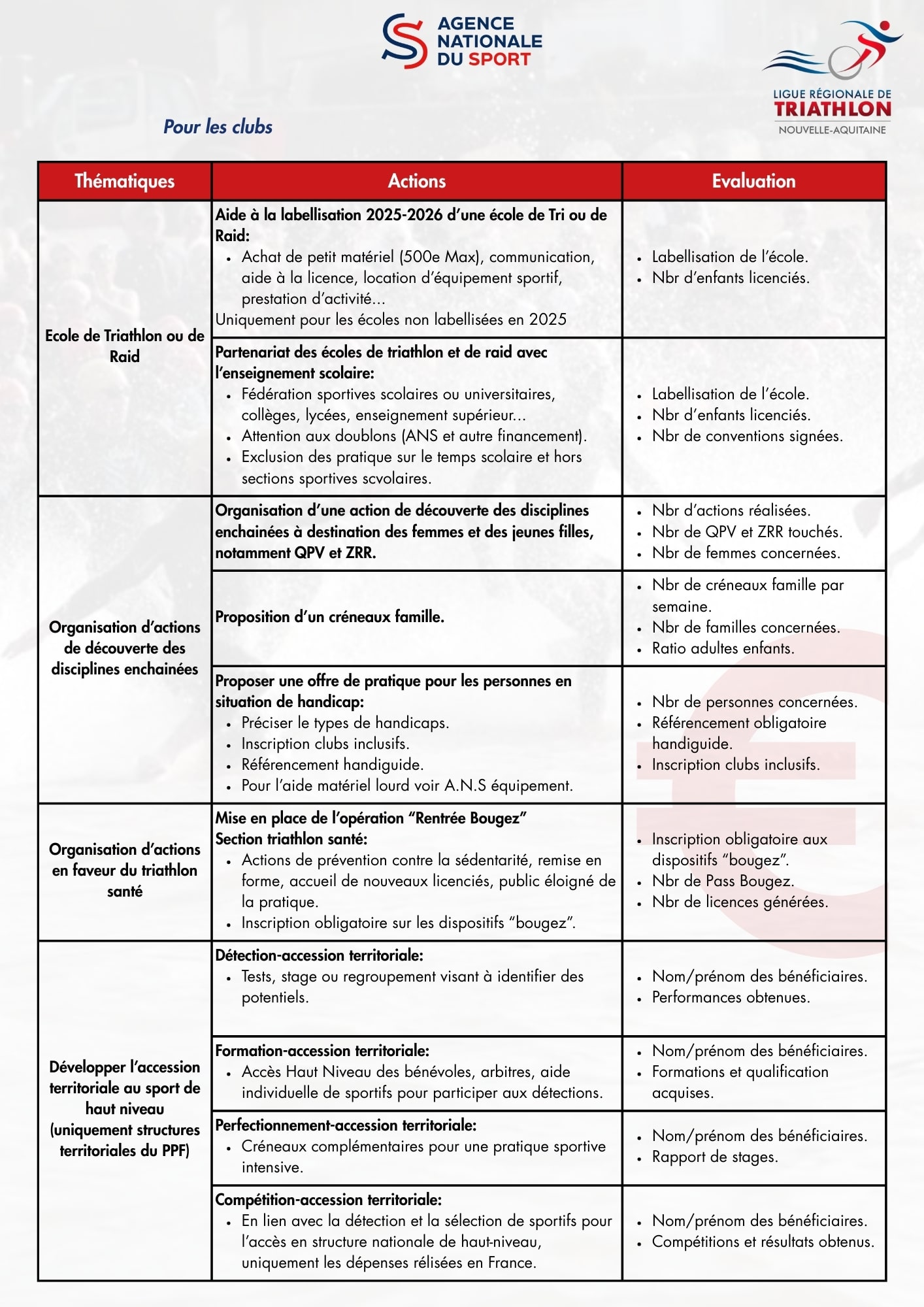 Liste des subventions clubs et comités